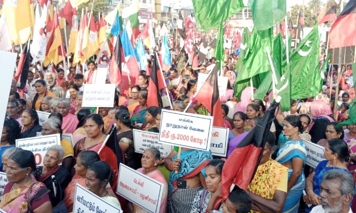 மத்திய பட்ஜெட்டில் தமிழகத்திற்கு உரிய நிதி ஒதுக்கீடு செய்யாமல் புறக்கணித்துள்ளதாக குற்றம்சாட்டி, ஒன்றிய பாஜக அரசையும் அதற்கு துணைபோவதாக குற்றம் சாட்டப்படும் அதிமுகவையும் கண்டித்து தூத்துக்குடியில் மாபெரும் கண்டன ஆர்ப்பாட்டம் நடைபெற்றது.